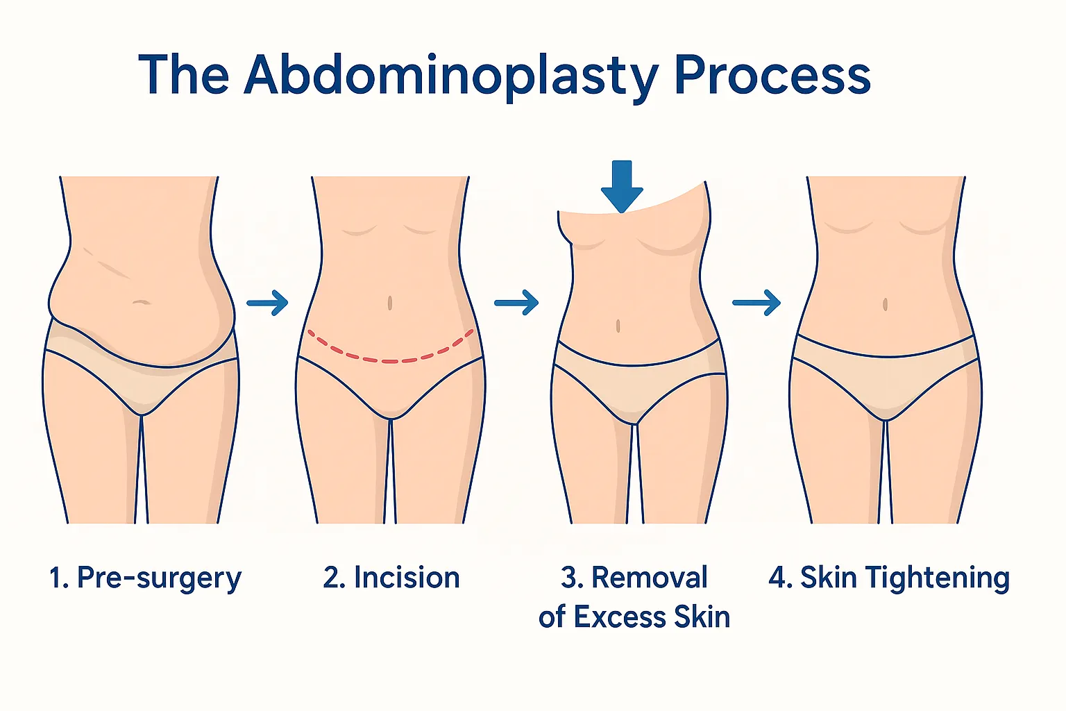 | آبدومینوپلاستی (جراحی شکم) | شکم با پوست شل و افتاده | شکم صاف و کشیده | حذف پوست اضافه و فرمدهی شکم |